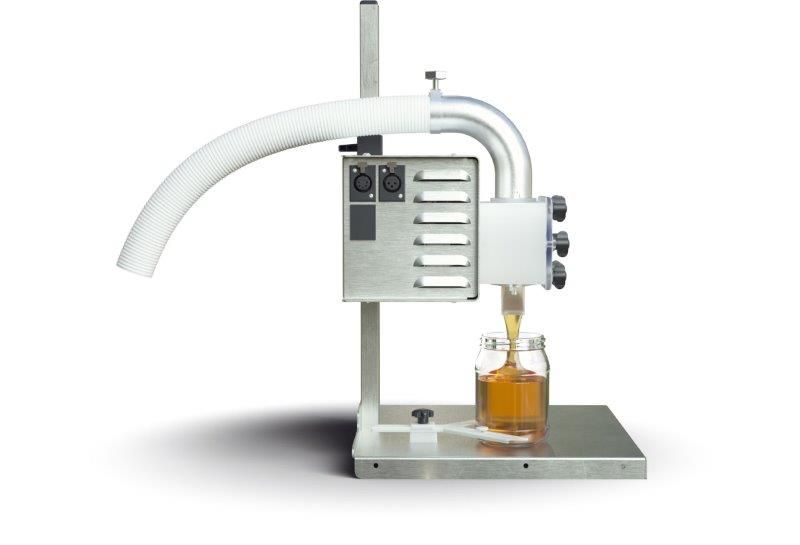 The machine fills liquid, freshly extracted honey at temperatures of 20–25°C. Very creamy honey with low water content must be warmed to this temperature to ensure a quick and smooth filling process. This filling machine allows precise and efficient dosing and is easy to clean.