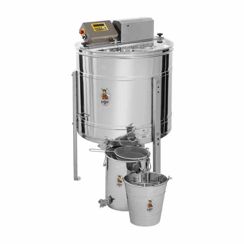 The receiving sieve bucket contains a fine sieve made from a stainless-steel mesh fabric that ensures a high honey flow rate. The honey receiving bucket is manufactured entirely from food-grade stainless materials.
