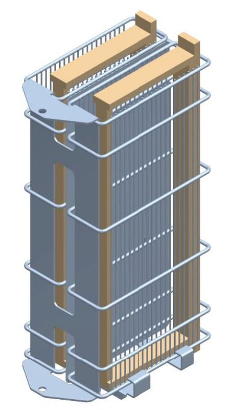 The frame pockets consist of vertical grid bars with a suitable density so that frames are not damaged during extraction. The pockets are linked by a special mechanism. Thanks to the construction, honey does not accumulate in the pockets, so frames are dry after spinning.